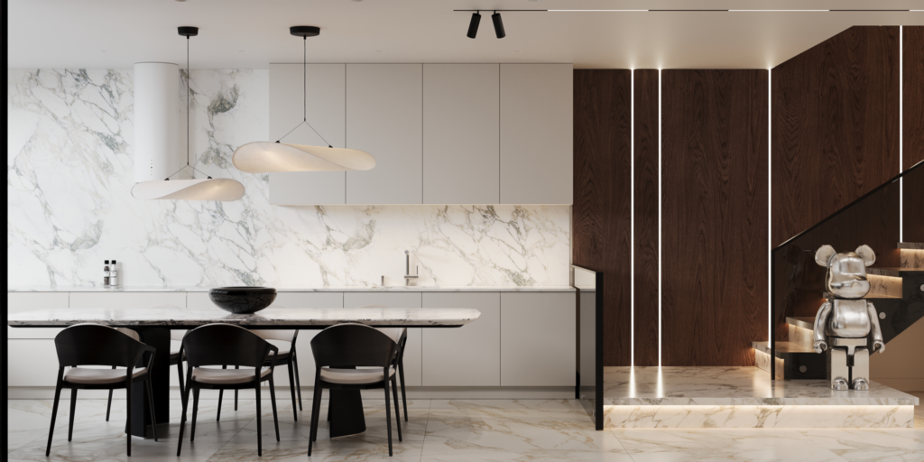 We advocate for minimalism in interior design. Why clutter a space with things that will soon go out of style? However, our renders are highly detailed. We use advanced technologies and software to render projects. It doesn’t take much time, but the result is impressive. Take a look at our portfolio